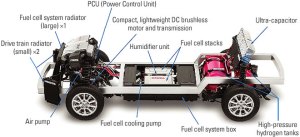 Abaixo, o Honda FCX Clarity, movido a Células a Combustível – Hidrogênio, e vista do chassis aberto do veículo, revolucionário sobre todos os aspectos.